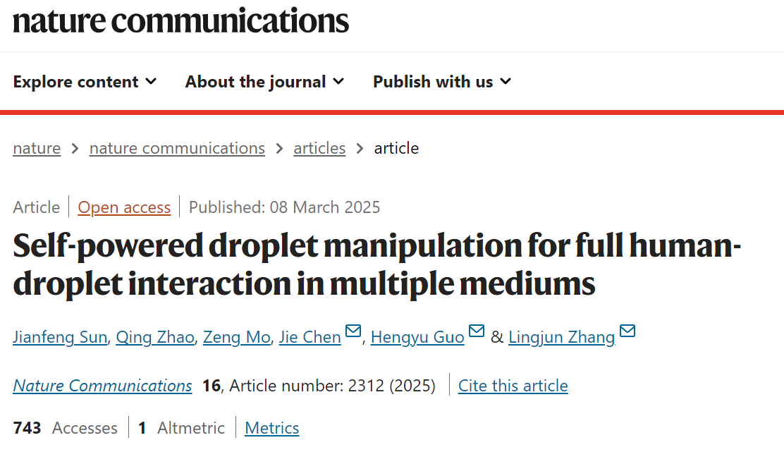 信息材料物理与器件团队在Nature子刊 Nature Communications上发表题为“Self-powered droplet manipulation for full human-droplet interaction in multiple mediums”的最近研究成果,韩国h漫