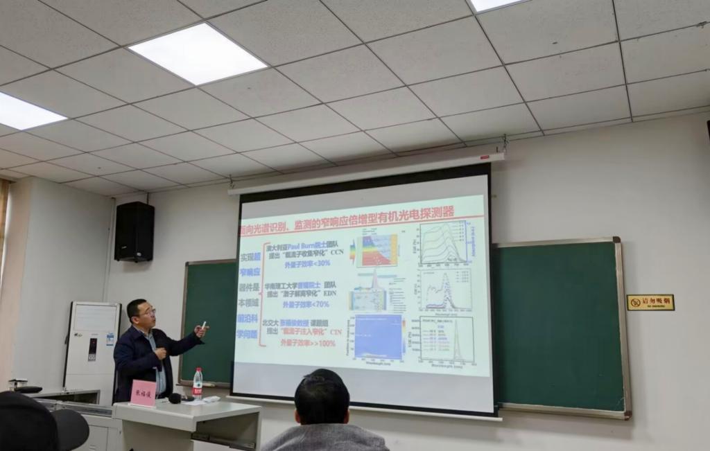 开展学术交流,并作题为“倍增型有机光电探测器的研制及应用探索”的学术报告。学院相关课题组青年教师和研究生参会,会议由张丁可副院长主持。