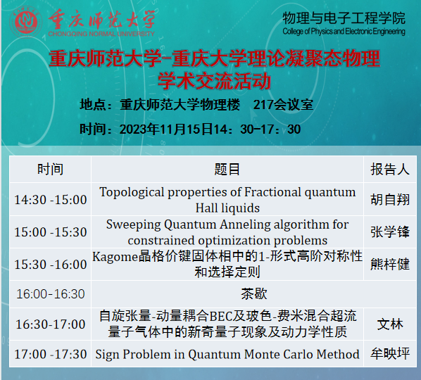 -重庆大学理论凝聚态物理学术交流活动”,探讨量子霍尔效应、强关联物理数值计算方法和冷原子物理等领域的发展动态和前沿热点问题,并分享交流各团队取得的最新研究成果。此次学术交流活动由韩国h漫
