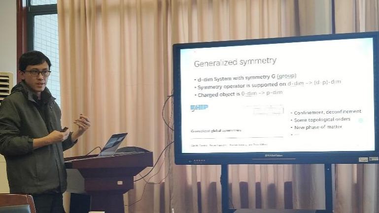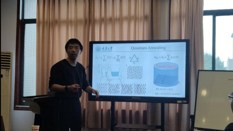 重庆大学胡自翔教授在报告中介绍了量子霍尔效应的发展历史和研究现状,系统总结了其课题组在该领域所取得的一系列研究成果,并分享了其在分数量子霍尔效应的拓扑性质研究方面取得的最新研究进展;重庆大学张学锋教授在报告中介绍了最近在针对复杂系统组合优化中拓扑类导致的各态无法历经问题所开发的新一类量子退火计算方法;重庆大学“弘深青年教师”熊梓健博士介绍了几何阻挫自旋模型的低能有效理论以及广义对称性,并展示了他在kagome晶格价键固体相的最新研究成果;韩国h漫