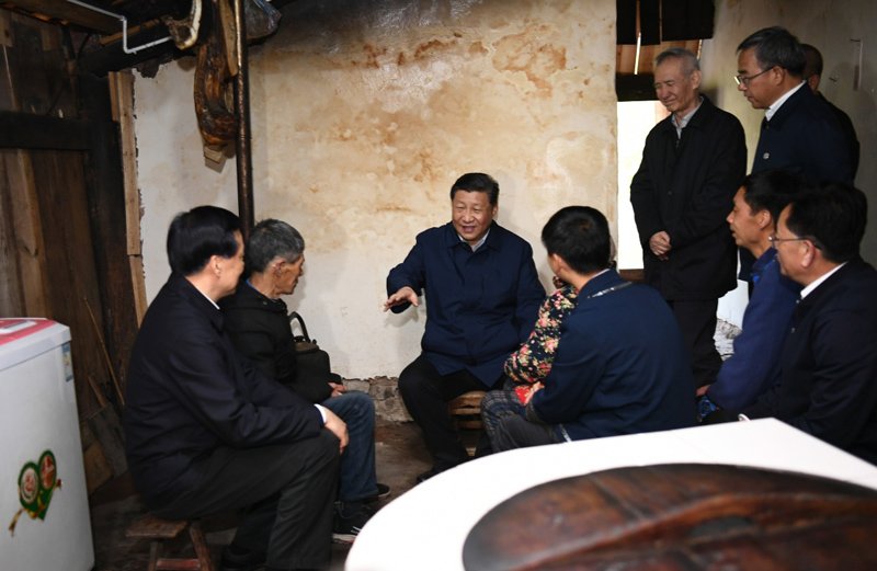 4月15日至17日,中共中央总书记、国家主席、中央军委主席习近平在重庆考察,并主持召开解决“两不愁三保障”突出问题座谈会。这是4月15日下午,习近平在石柱土家族自治县中益乡华溪村看望贫困户谭登周一家。新华社记者 刘彬 摄