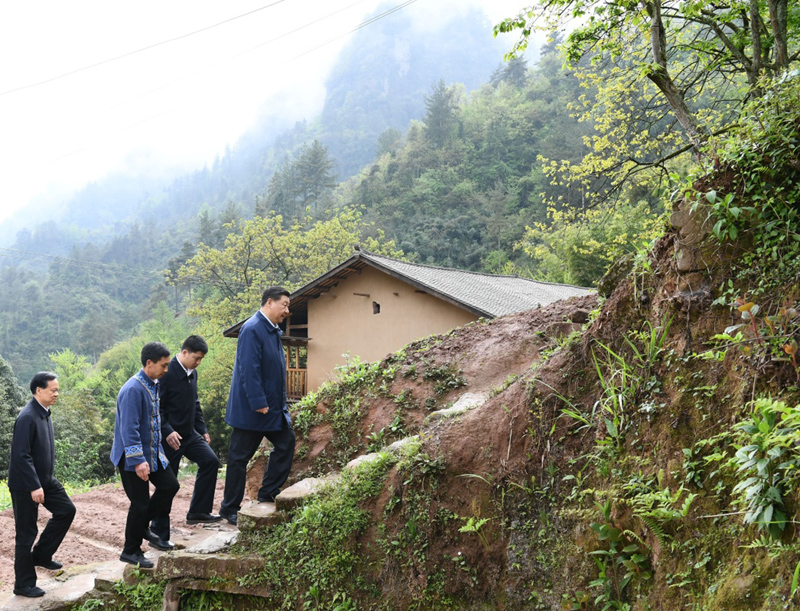 4月15日至17日,中共中央总书记、国家主席、中央军委主席习近平在重庆考察,并主持召开解决“两不愁三保障”突出问题座谈会。这是4月15日下午,习近平在石柱土家族自治县中益乡华溪村察看自然环境、村容村貌。新华社记者 王晔 摄